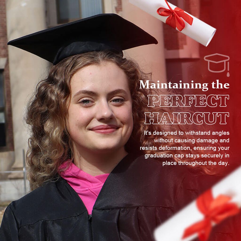 Make sure you look flawless on your big day with our graduation cap holder. This innovative accessory is designed to keep your hairstyle perfectly in place during the ceremony, ensuring you look your best as you mark this important milestone in your academic journey.